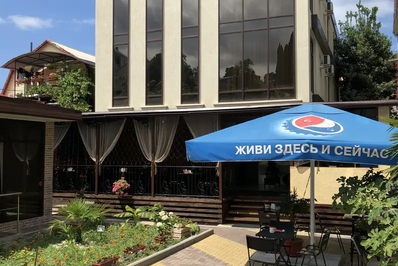 Отдых в июле 2020. Номер 1 этаж, отдельный вход. Очень светлый, все чисто, в номере: шкаф, огромная кровать, телевизор, тумбочка, душ, туалет (совместный). Через три дня смена полотенец, на 5 день уборка в номере, Татьяна, горничная, убирается на 6), видела, что даже перила она с дез средствами протирает кажд день До моря, если учесть, что я всегда хожу не спеша, макс мин 10, а так наверное мин 5−7, не напряжно По пути до/с моря насчитала 3 столовых и несколько кафе с шашлыками и т д, но по качеству сказать не могу, т к все 10 дней обедала кажд день в Панораме, иногда завтракала (не могу с утра есть), а от ужина отказывалась по причине очень сытного обеда. Повар, Наталья, готовит просто великолепно, по-домашнему, каждое утро у тебя спрашивают, будете обедать или нет, т к ничего вчерашнего, все «с пылу, с жару «!! Очень понравилось, вкусно, не надо думать о еде, где, что, пришёл с моря, тебе подают только что сваренный свежий обед ! Хозяева: Денис и Станислава, ну просто хорошие люди, Денис встретил в аэропорту бесплатно, приехал заранее, долго ждал пока получала багаж. На вечер можно заказать еду из меню, жаль не сфоткала, чего только нет, мидии, шашлык, долма, хачапури, сковорода (забыла как называется))), все готовится ко времени, к которому закажете. Но! В первый день, прилетев, хотела заказать Денису шашлык, в 7 вечера, он отказал. Покупаю утром парное мясо, чтобы приготовить хороший шашлык, только так. Прям впечатлил) Завтрак 120 р, обед 250 р, ну по мне очень много, видела семью с 2 детьми, заказывали 2 обеда, а встали из-за стола сытыми все четверо. Магазин 5ка минуту ходьбы, есть кухня, чтоб готовит самим. Станислава, хозяйка, на каждое обращение реагирует и решает моментом На море лучше купить тапочки, хотя я спец не стала, массаж ног))) Попробовала барабульку копчёную, вкусно На экскурсии ездила лет 9 там назад, ничего не скажу Забыла ! Крыша ! Отдельная тема ! Вид ! Лежаки, столики, ветерок, можно позагорать, посидеть, класс ! А, ещё, двор закрыт, при заселении у кажд эл ключ, чужому не зайти. При выходе справа, можно купить в магазине хозяев свежее пиво и рыбку, пиво от 55, самое дорого вроде 70 за 0,5, везде 80, у Дениса своё оч вкусное вино, кому покрепче, мандариновка Главный вопрос, который я всегда ищу в отзывах, если поедите в Адлер, остановитесь ли Вы в этой же гостинице? Да, однозначно.