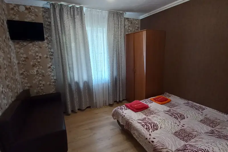 Предлагаем 2-х, 3-х, 4-х местные номера «Стандарт» со всеми удобствами, а также 2-х комнатный номер (на 6 мест) с кухней для всей семьи и двухкомнатный на 5 мест. В номерах имеется: телевизор, WiFi, кондиционер, душ, туалет, горячая вода (круглосуточно). На зеленой благоустроенной территории расположена беседка для отдыха со столиками и мангалом, к услугам гостей предоставляется бесплатная парковка. Номера заселяются по количеству спальных мест.