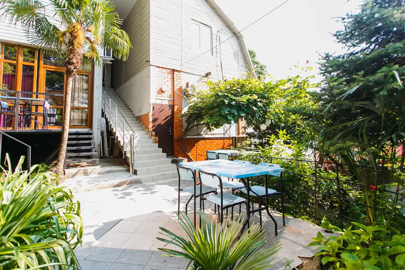 На террасе, расположенной среди пальм, инжира и хурмы, можно отдохнуть семьёй или дружной компанией. На всей территории гостевого дома работает Wi-Fi. В шаговой доступности есть продуктовые магазины, которые работают круглосуточно. Есть бесплатная и платная автостоянки, кафе, столовая, аптеки, остановка автобуса и Ласточки до Сочи.