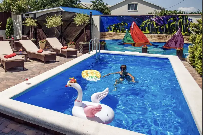 Отдыхали вдвоем с мужем, остались всем довольны, очень приветливые и благодарные люди! Все показали, рассказали, на территории есть красивая беседка, где можно позавтракать, много зелени, бассейн, двор очень ухоженный, чистый, находиться там приятно. Комната тоже чистая, ничего лишнего, зато есть все нужное — холодильник, фен, шкаф, телевизор, сплит система). Дом находится в тихом районе, можно отдохнуть и выспаться, ничего не мешает. Ходили до моря пешком, так как молодые, получалась приятная прогулка, минут 15−20 спокойным шагом) Спасибо большое, что приняли нас так тепло! Будем рекомендовать и приезжать сами снова!
