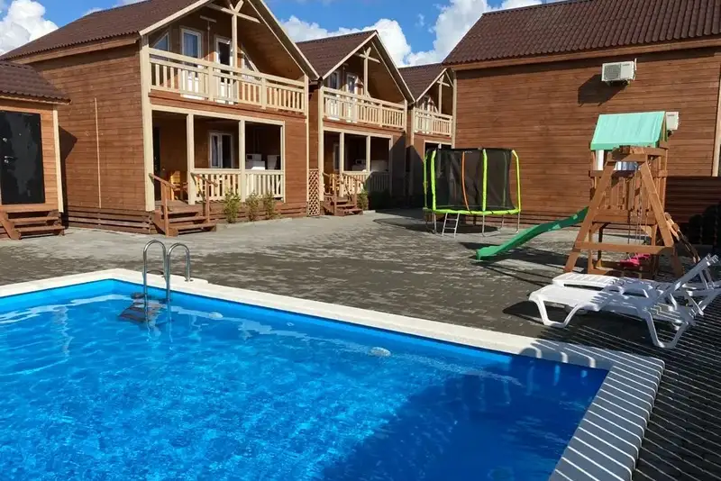 Кухня оснащена всем необходимым оборудованием и посудой. Общая территория комплекса представлена мангальной зоной, детской площадкой. Так же есть бассейн.
