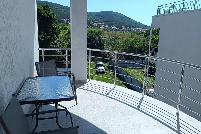 Отдыхали в сентябре 2024 г. Номер был не тот, что на сайте, а отдельный комфортный двухкомнатный новый номер! Со всем необходимым! Продумано всё до мелочей! С собой только вещи можно брать. Номер новый, с хорошим ремонтом! Просторные комнаты, большая кухня (было всё, что нужно!) и прихожая. Отдыхали две семьи и друг другу не мешали! На территории бассейн, мангал, беседка, лежаки. Рекомендую однозначно! Единственный минус — немного далековато до моря (20 минут), засекали специально, но после пары дней привыкаешь. Но тот комфорт, что был, можно и походить! Есть с чем сравнить, ездим более 10 лет, и кроме кровати и тумбочки обычно больше ничего нет! А тут просто как дома!
