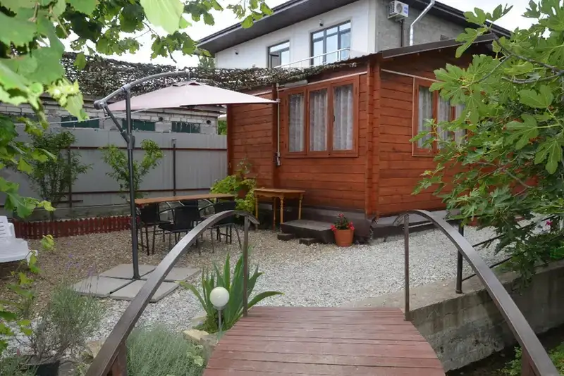 Дом расположен в тенистом зелёном саду, который пересекает ручей, который переливается с пением птиц.