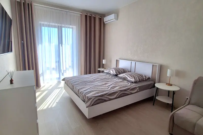 Вся инфраструктура в шаговой доступности, центральная набережная и пляж в 10 минутах ходьбы.