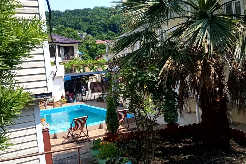 Отличная гостиница, рядом фруктовые лавки и магазинчики со всем необходимым! Хозяева добрые и отзывчивые люди! До моря минут 7 неспешным шагом. Номера чистые, есть бассейн, на кухне очень много посуды! Всем рекомендую!
