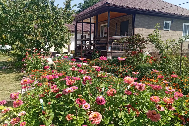 Уютный коттедж с верандой. Внутри две комнаты и кухня-гостиная. Санузел есть. Три односпальные кровати и одна двуспальная на 1,20 метра. На кухне диван, который можно использовать как дополнительное спальное место. Дом рассчитан на четырёх человек, но можно разместить и больше за доплату. Туалетные принадлежности (бумага, шампуни, маски, гели и т. д.) не включены в стоимость.