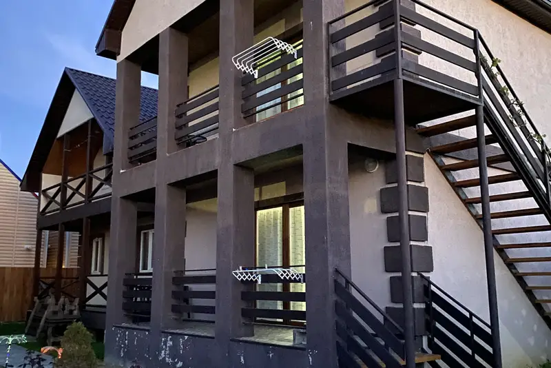 Сам коттедж расположен на первой линии 150 — 200 м от моря, пешком 2−3 минуты.