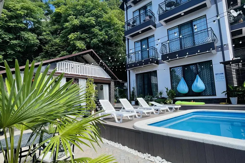 На территории 2 коттеджа. Уютный двор, бассейн, терраса для отдыха, детская зона, wi-fi. Для гостей есть полностью оборудованные кухни, мангальная зона.