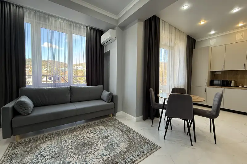 Очень уютная и чистая квартира, что создает комфортную атмосферу для проживания. Есть всё необходимое. Идеально чистые комплекты белья, удобные подушки и матрас. Квартира находится в современном ЖК, в котором много детских площадок, закрытый двор с парковкой. В шаговой доступности есть всё необходимое, магазины, кафе, рынок. Всё понравилось, обязательно вернёмся ещё!!! Рекомендую!!!