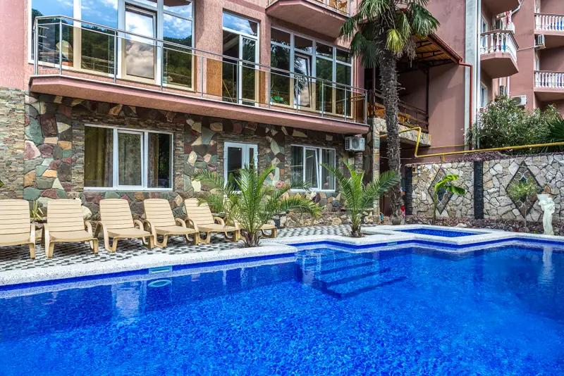• Подогреваемый стационарный бассейн с чистой водой — удовольствие в любое время дня.