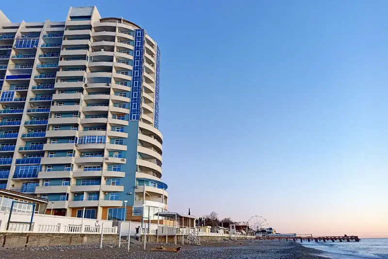 Апартаменты расположены на первой береговой линии в поселке Лазаревское города Сочи. Выход на пляж прямо с закрытой территории дома через калитку. Железнодорожный вокзал, Лазаревский парк культуры и отдыха, аквапарки, магазины — всё в шаговой доступности.