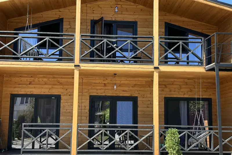 У нас 5 деревянных домов. Дома все разные по планировке.