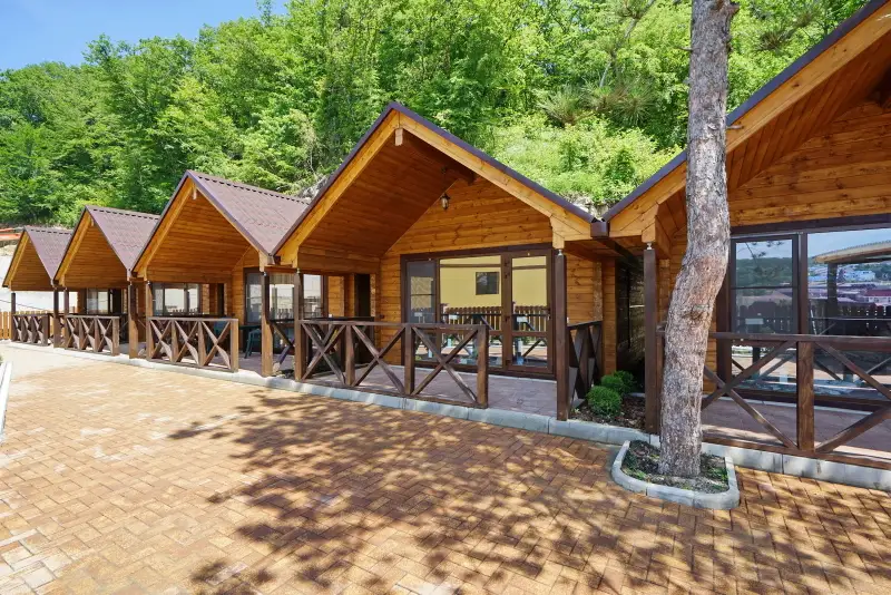 Сдается эко-домик целиком, вместимость 1−4 человека. Расстояние до моря всего 450 метров. На территории имеется бассейн с шезлонгами и уличной мебелью. Бесплатная парковка