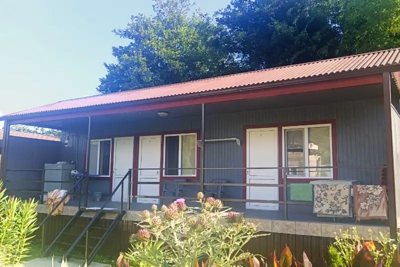 Есть 3 номера, в каждом душ, санузел, кондиционер, огромная общая кухня, с телевизором, стиральной машинкой. Цена номера 3500 р. в июле и августе.
