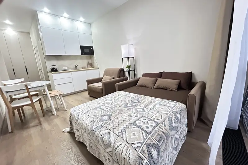 Новая комфортная студия для проживания троих гостей. В потрясающем ЖК бизнес-класса.