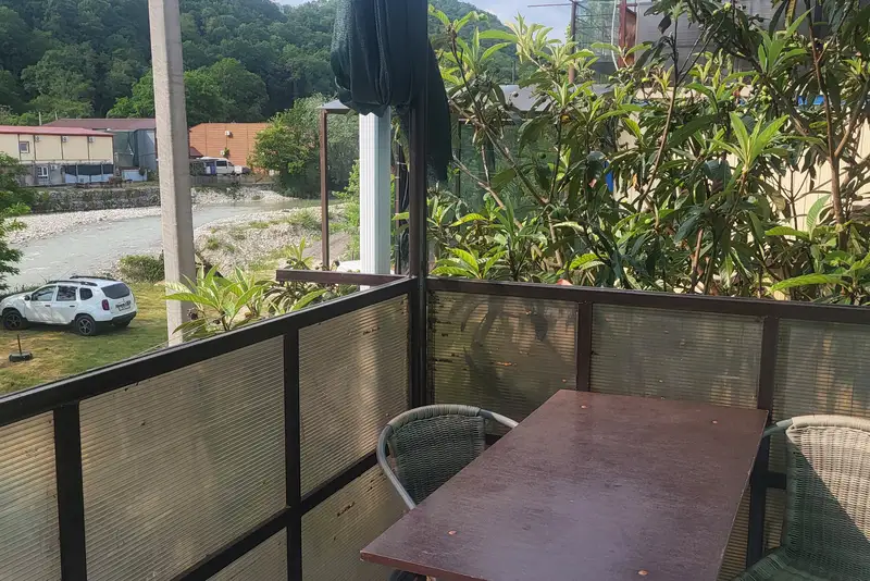 Коттедж со своей небольшой лесной территорией, который имеет выход к реке. На своей территории имеется парковка, есть где пожарить шашлык. в 3-х минутах ходьбы станция ж/д Шепси, а также: кафе, столовые, рынок курортных товаров и овощей здесь-же в 200 метрах.
