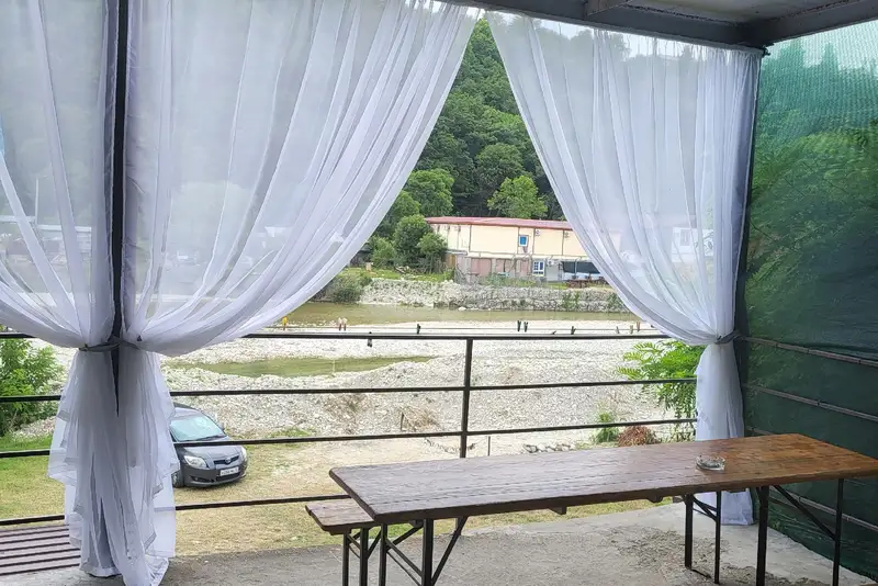 Коттедж у моря расположен в семейном курорте Шепси, на территории ГЛК «Дельфин» в 5 минутах ходьбы от пляжа. Коттедж со своей небольшой лесной территорией, который имеет выход к реке. На своей территории имеется парковка, есть где пожарить шашлык. в 3-х минутах ходьбы станция ж/д Шепси, а также: кафе, столовые, рынок курортных товаров и овощей здесь-же в 200 метрах. Центр отдалён от коттеджа на расстояние 15 минут ходьбы. В центре Шепси находятся: аптека, магазины, амбулатория, рынок, салоны красоты, детские площадки.