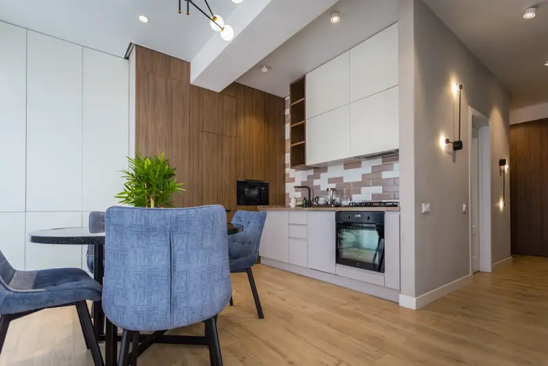 Дизайнерский ремонт из дорогих и качественных материалов.
