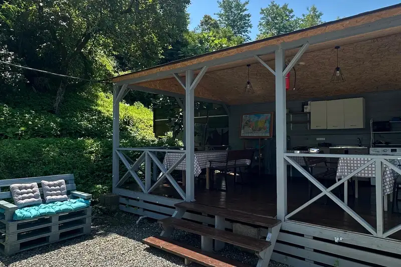 Отличное место. Отдыхали в июле-августе 2025. В домиках все новое, чистое, все работает. Любые вопросы решаются очень оперативно. На кухне тоже все есть. И для барбекю, и для того, чтобы приготовить еду или просто разогреть. Очень удобное место. Рядом хороший, оборудованный пляж Mornero. До него минут 5−7 пешком через очень крутой парк Синоп. Рядом и кафе и столовая. При этом не слышно шума от дороги и от дискотек на пляже. Нам очень понравилось это место.
