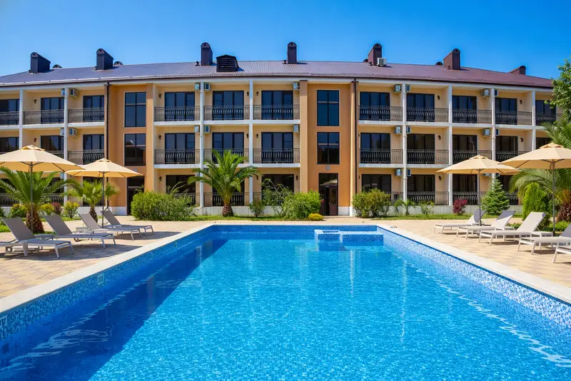 На территории отеля доступны открытый подогреваемый бассейн, зона релаксации и летний бар для вашего комфортного отдыха.