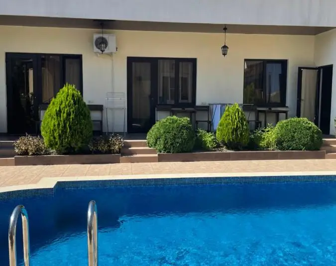 Отдыхали всей семьёй, очень уютные чистые номера, утром за чашечкой кофе хорошо подышать свежим воздухом на балкончике своего номера. Днём когда палящее солнце гонит в тень вас освежит прохладный бассейн, а вечер здорово провести в беседке за разговорами с другими гостями. Хозяйка (добрейшая женщина) угостит вареньем из инжира и фейхоа, хозяин Шираз напоит домашним вином, а Арут отвезёт на классную экстремальную экскурсию спасибо вам большое за гостеприимство!!!