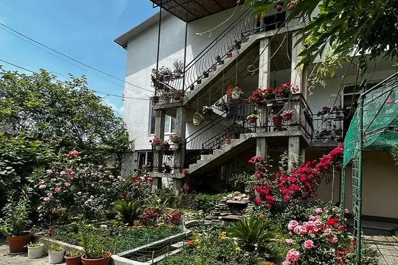 На ухоженной территории есть бассейн, терраса для загара, беседки для отдыха, игровая комната для детей, качели, настольный теннис. Расстояние до ж/д станции Вардане — 810 м, до аэропорта Сочи — 76 км.